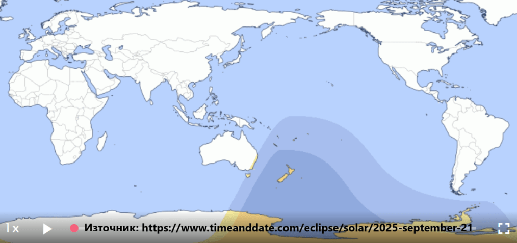 Denna gång kommer solförmörkelsen att inträffa klockan 21:54 svensk tid och kommer inte att vara synlig från Europa. Den kommer faktiskt vara synlig från en mycket liten del av världen – Nya Zeeland, en del av Australien och Antarktis, samt från vissa öar i Stilla havet (se karta).
